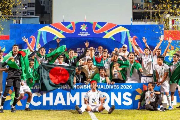 বাংলা রিডার ডেস্ক সাফ অনূর্ধ্ব-২০ চ্যাম্পিয়নশিপে অপরাজিত চ্যাম্পিয়ন হয়ে দেশে ফিরছে বাংলাদেশ দল। দক্ষিণ এশিয়ার বয়সভিত্তিক এই...