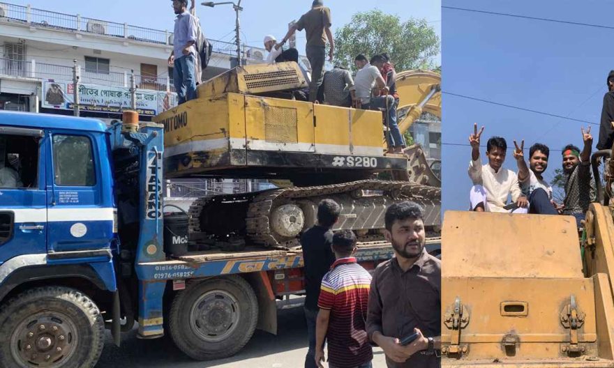 ঢাকা কলেজের শিক্ষার্থীরা বিক্ষোভ মিছিল শেষে বুলডোজার নিয়ে ধানমন্ডি ৩২-এর দিকে যাত্রা করেছেন। সোমবার (১৭ নভেম্বর) সকালে ক্যাম্পাস থেকে তাদের এই মিছিল শুরু হয়।