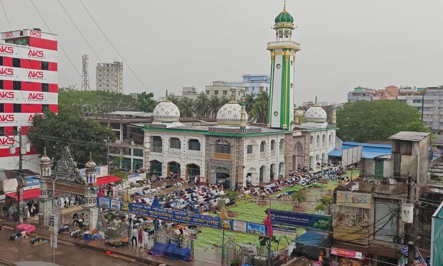 নামাজ শেষে দেশ, জাতি ও মুসলিম উম্মাহর শান্তি, নিরাপত্তা ও সমৃদ্ধি কামনায় বিশেষ দোয়া ও মোনাজাত করা হয়।