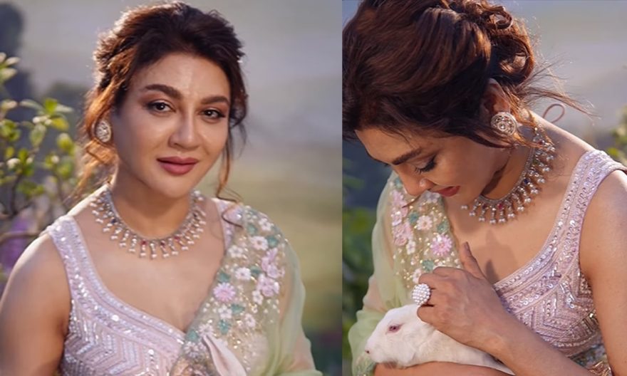 ভিডিওটিতে তাকে দেখা যায় প্রাকৃতিক পরিবেশে একজোড়া সাদা খরগোশের সঙ্গে সময় কাটাতে। কখনো খরগোশকে কোলে নিয়ে আদর করছেন, আবার কখনো নিজের হাতে তাদের ঘাস খাওয়াচ্ছেন—এমন আন্তরিক মুহূর্তে ধরা দিয়েছেন তিনি।